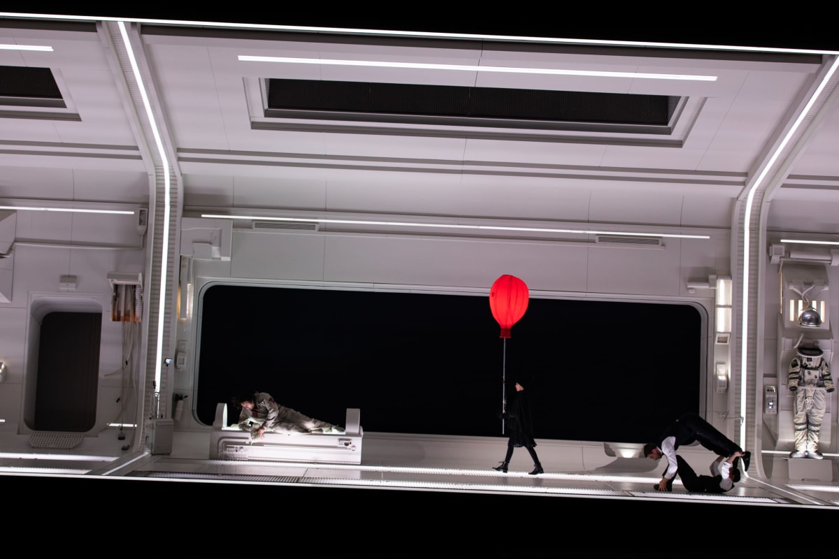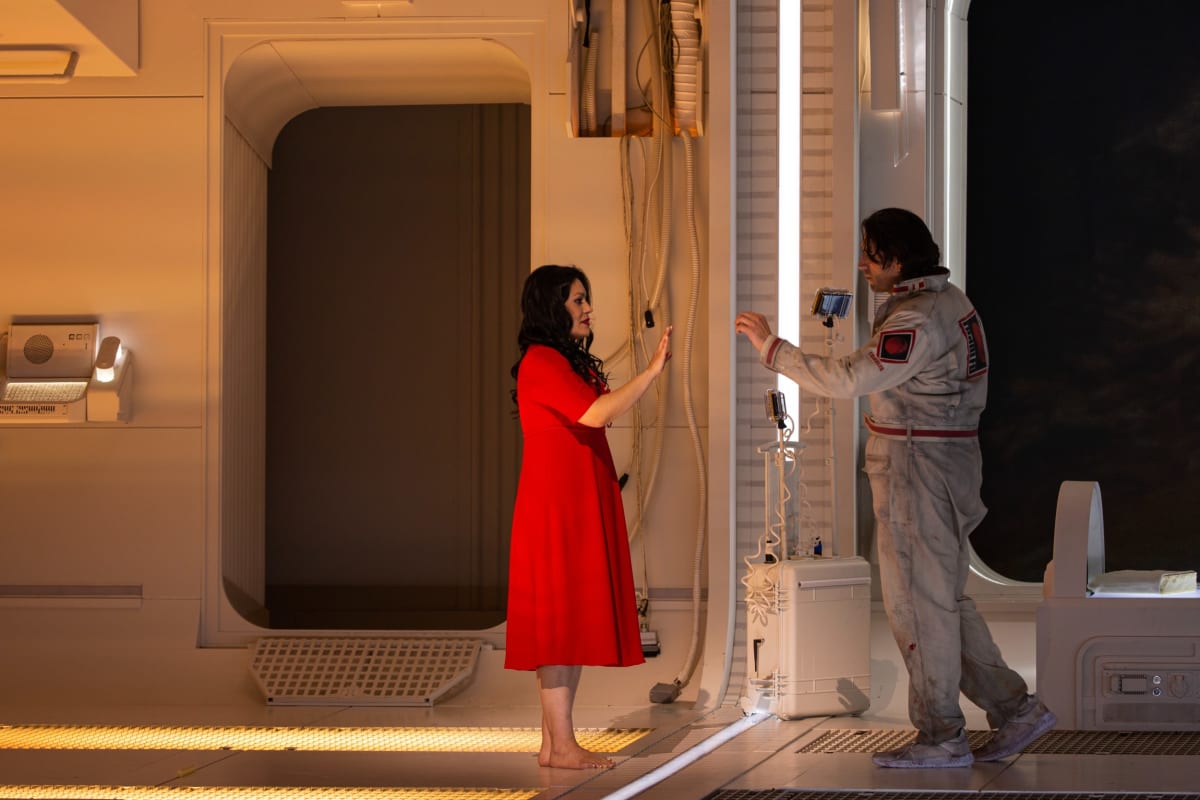 L’idée de partir d’une période de maturité des ex-jeunes bohèmes se remémorant l’épisode tragique du destin de Mimi dans leur prime jeunesse, n’est pas nouvelle et ne pose pas de problème si l’on respecte justement le fait qu’il s’agit d’une plongée douloureuse dans un passé dramatique, qui comporte sa part très forte de poésie qui imprègne tout souvenir romantique. Mais Guth construit un autre présent, qui occupe autant de place que le passé remémoré, celui de cosmonautes perdus dans l’espace et qui savent qu’ils vont mourir. Belle histoire d’ailleurs, elle-même très romantique, mais qui se greffe assez mal sur le livret de l’opéra et oblige à des contorsions qui égarent un public qui ne connait pas forcément l’œuvre, et aboutit à plusieurs reprises à casser l’émotion habituellement omniprésente.